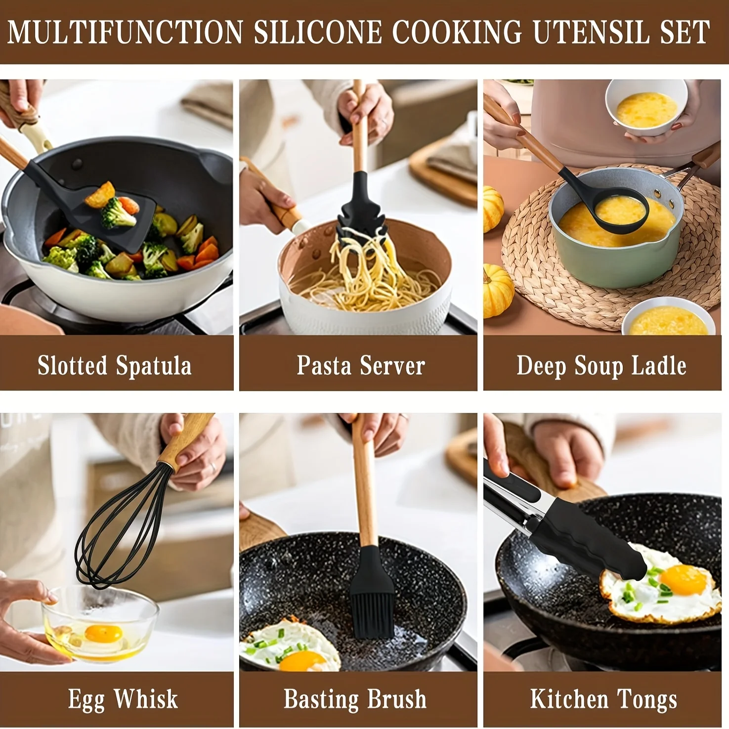 33pcs Silicone Kitchen Cooking Utensils Set, Non-Stick Utensils Spatula Set With Holder, Wooden Handle Silicone Kitchen Gadgets