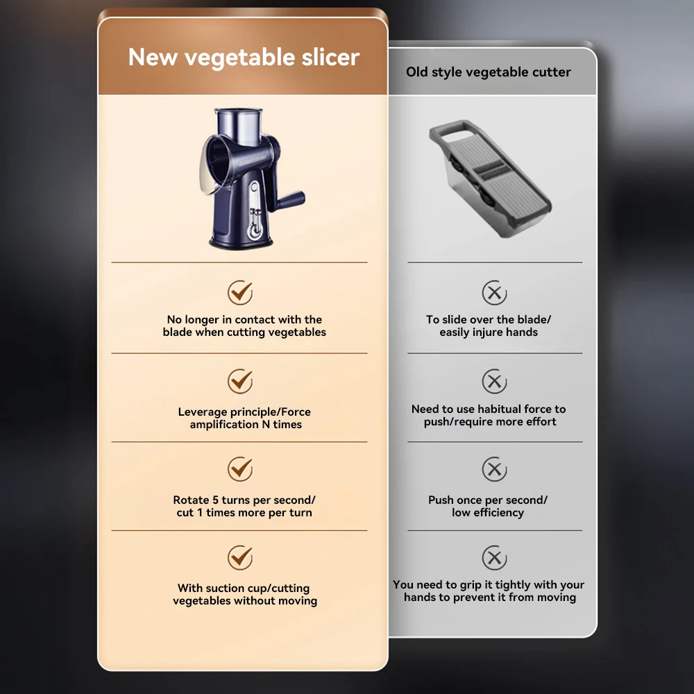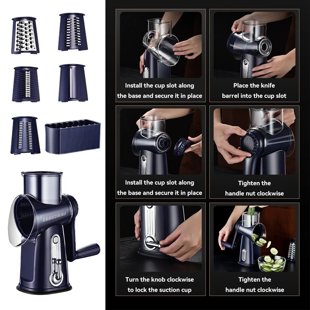 Make food preparation faster and easier with this 5-in-1 rotary grater and slicer, designed for everyday home cooking. It allows you to effortlessly shred, slice, and grate vegetables, cheese, fruits, and more with minimal effort. Its compact and efficient design saves kitchen space while improving cooking convenience.